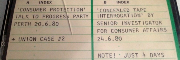 Using a concealed tape, Ron recorded part of his interrogation by Senior Investigators for Consumer Affairs. Kalgoorlie.